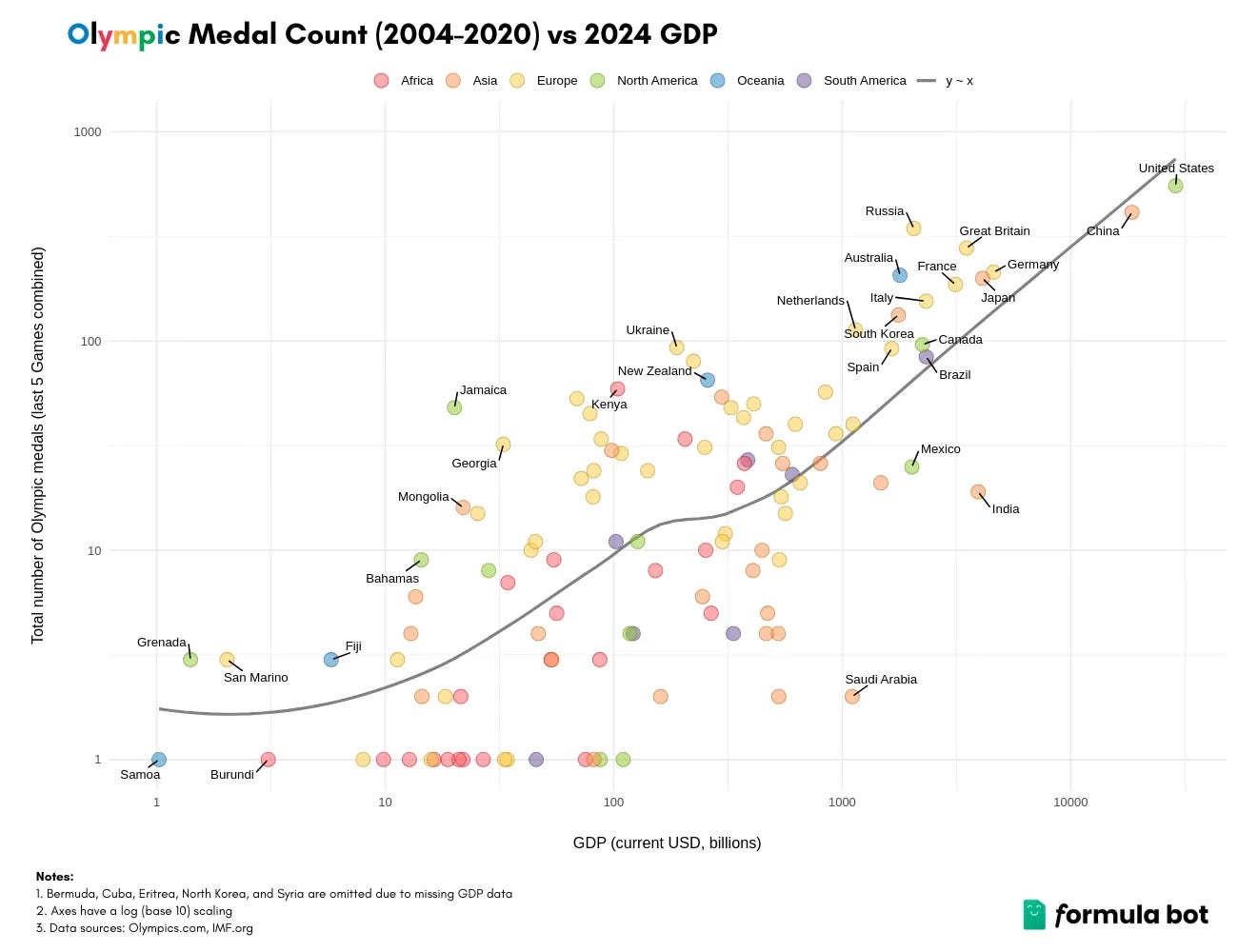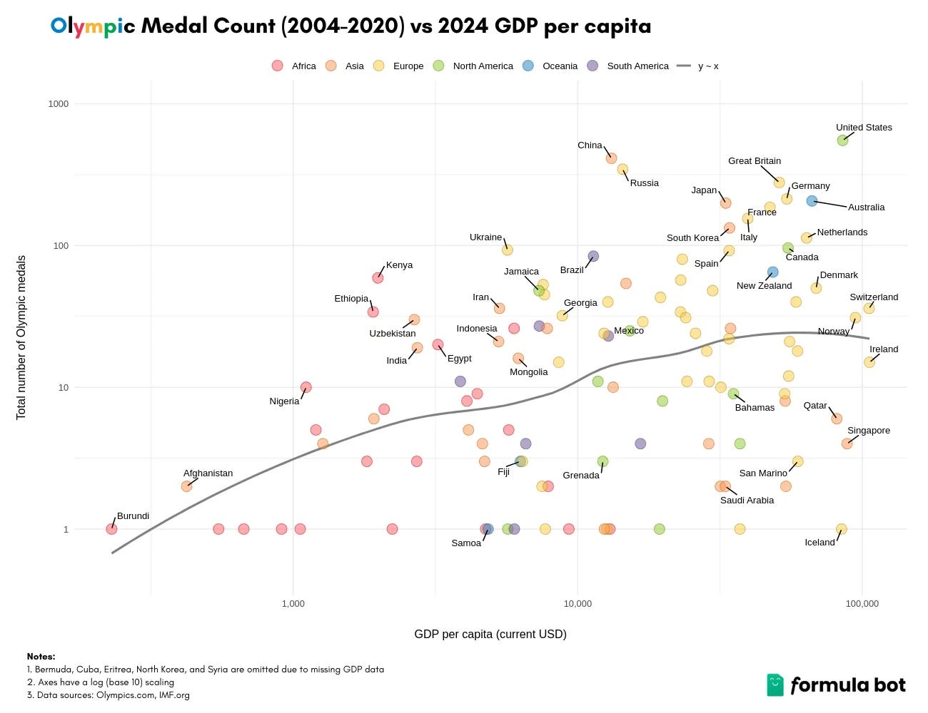 ![A scatter plot graph by Reddit user atoziye_ illustrating the correlation between Olympic medals and GDP Per Capita. Each dot represents a country. The x-axis shows GDP Per Capita, while the y-axis shows the number of Olympic medals won. The graph demonstrates a positive correlation, with wealthier countries generally winning more medals.] A scatter plot graph by Reddit user atoziye_ illustrating the correlation between Olympic medals and GDP Per Capita. Each dot represents a country. The x-axis shows GDP Per Capita, while the y-axis shows the number of Olympic medals won. The graph demonstrates a positive correlation, with wealthier countries generally winning more medals.]](https://substackcdn.com/image/fetch/$s_!UAmb!,w_1456,c_limit,f_auto,q_auto:good,fl_progressive:steep/https%3A%2F%2Fsubstack-post-media.s3.amazonaws.com%2Fpublic%2Fimages%2F7e3a5317-7870-4e7a-9b2c-681dfc260f52_1300x1000.heic)