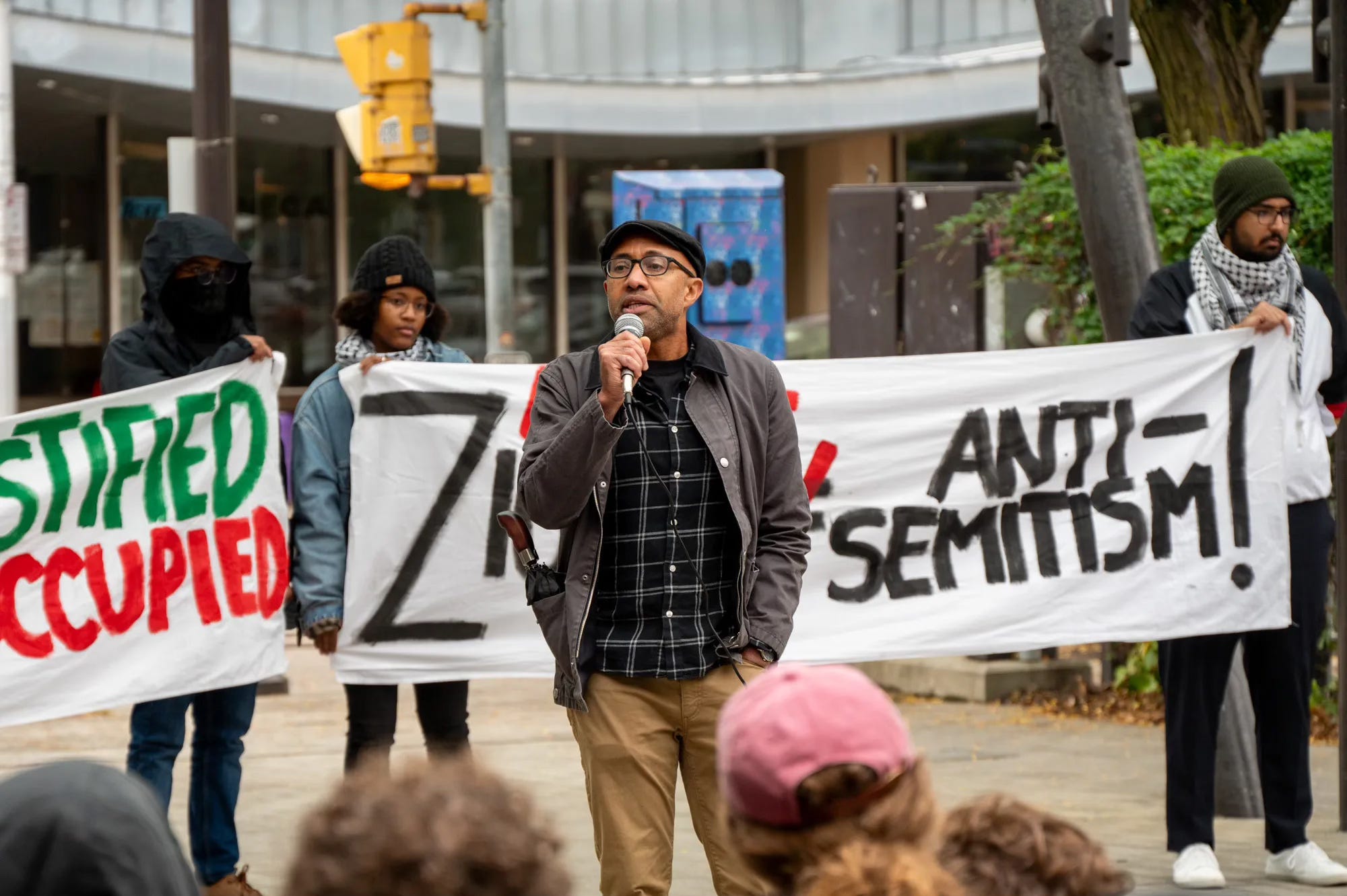 And you know what? They’re not fully wrong. Criticism of Israel is most certainly not anti-semitism. But when, for example, a Cornell professor standing in front of a flag that says anti-zionism does not equal anti-semitism says it’s exhilarating that Hamas killed Israeli civilians … well, make up your own mind, here’s what he said: