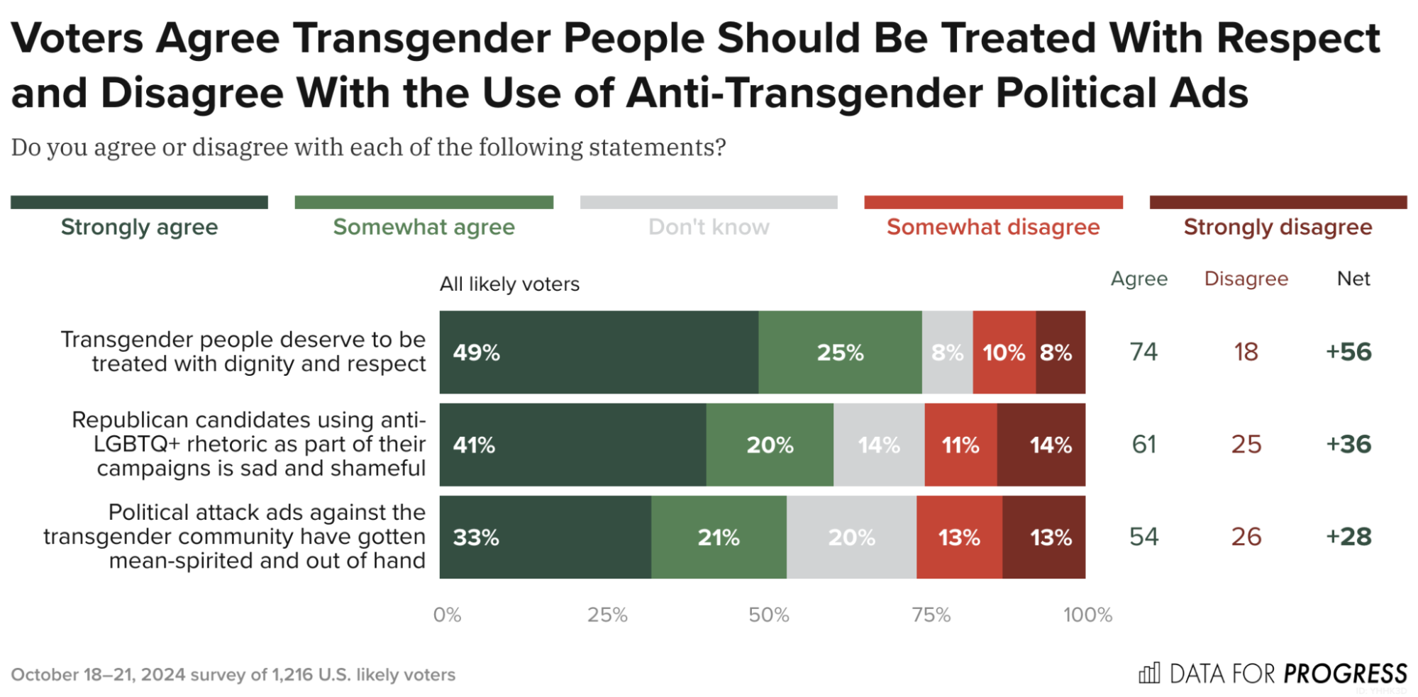 The recent news doesn’t stop there: a Gallup poll showed that voters don’t think transgender issues are as important as the media portrays it. A Sienna poll showed that in key battleground states, 56% of the people agree that trans people should be able to identify with the gender they identify with.